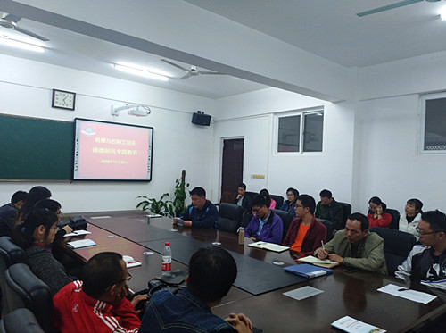 2018年11月20日下午,机械与控制工程系在藏修楼3205会议室召开了师德师风专题教育会,该系全体教师参加会议,会议由党总支书记袁斌主持。