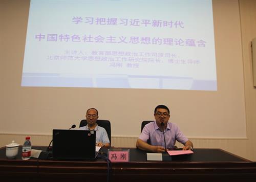 6月5日上午,北京师范大学马克思主义学院冯刚教授应邀到分校空港校区图书馆报告厅作主题为“学习把握习近平新时代中国特色社会主义思想的理论蕴含”的专题讲座。分校在家校领导,全体中层干部、基层党支部书记、辅导员、思政教师,扶绥县委宣传部、党校部分教师共同聆听了讲座。讲座由分校党委书记白永生主持。