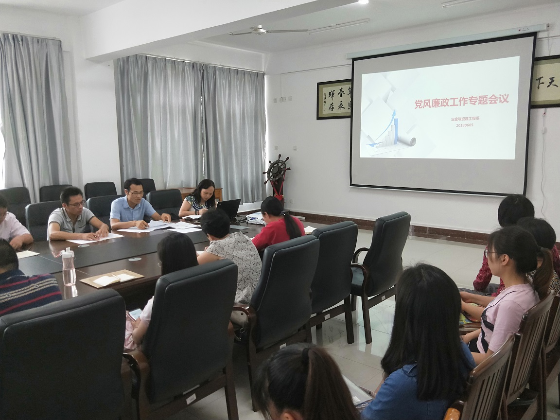 6月5日下午,冶金与资源工程系在探源楼5207会议室召开党风廉政建设专题会议,深入开展师德师风教育,并逐级签订党风廉政建设责任状,明确工作要求,落细落实党风廉政责任。会议由党总支副书记兼纪检委员黄运堪主持,系领导班子、支部书记、教研室主任及教职工参加了会议。