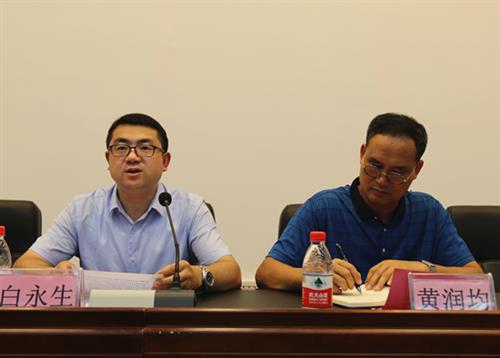 分校白永生书记(左)传达全面从严治党相关会议精神并部署分校2018年全面从严治党工作