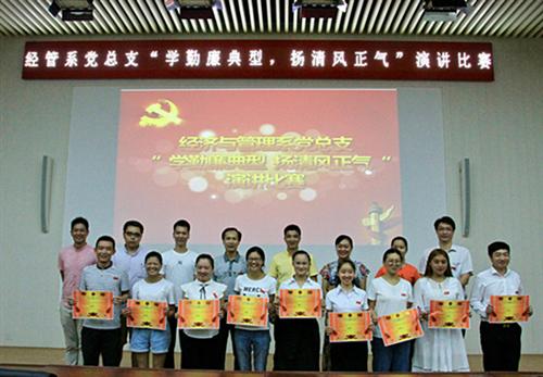 9月29日下午,经济与管理系党总支在分校图书馆报告厅举办“学勤廉典型,扬清风正气”演讲比赛,分校纪检监察室主任邹志友、系主任周子平、系党总支书记梁勤、分校组织部吕顺岷,各党支部书记,全体党员和部分入党积极分子参加会议。