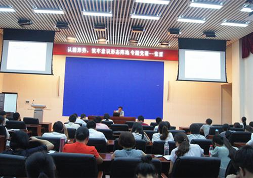 6月27日下午,分校纪委张雷书记在空港校区图书馆报告厅为经济与管理系全体党员讲授 “认清形势,筑牢意识形态阵地”专题党课。