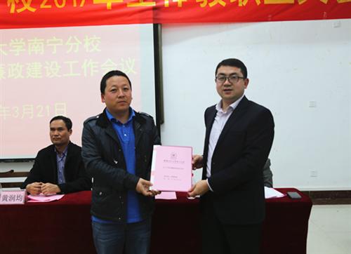 分校后勤管理部负责人向分校党委白永生书记递交2017年党建工