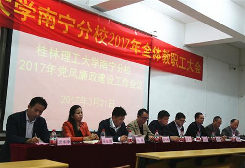 3月21日下午,分校在空港校区启智楼208教室召开2017年党风廉政建设工作会议。会议传达了学校2017年党风廉政建设工作会议精神,总结了分校2016年党风廉政建设工作,部署了分校2017年党风廉政建设工作任务。分校校长冯兵,党委书记白永生,副书记梁冬松、黄润均,纪委书记张雷,副校长劳景寮、陈东莲、梁锦叶、唐承泽出席会议。分校全体教职工参加会议。会议由梁冬松副书记主持。