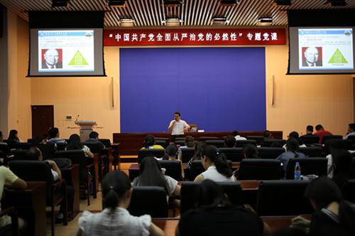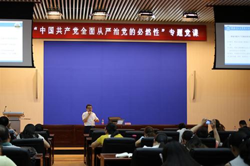 5月4日下午,分校党委书记白永生在空港校区图书馆报告厅为分校经济与管理系、电气与电子工程系全体党员讲授题为“全面从严治党的必然性”专题党课。