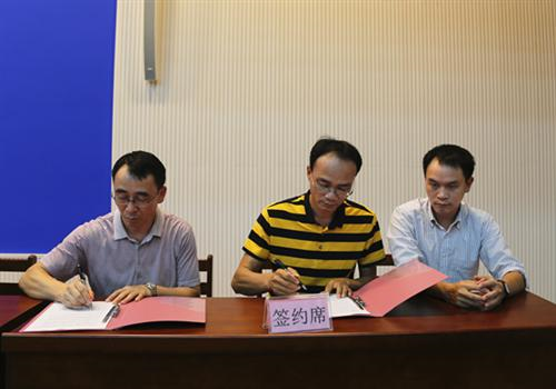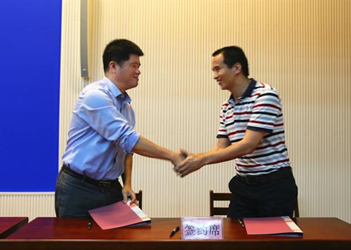 分校校长冯兵(左)与副校长唐承泽现场签订2016年党风廉政责任状