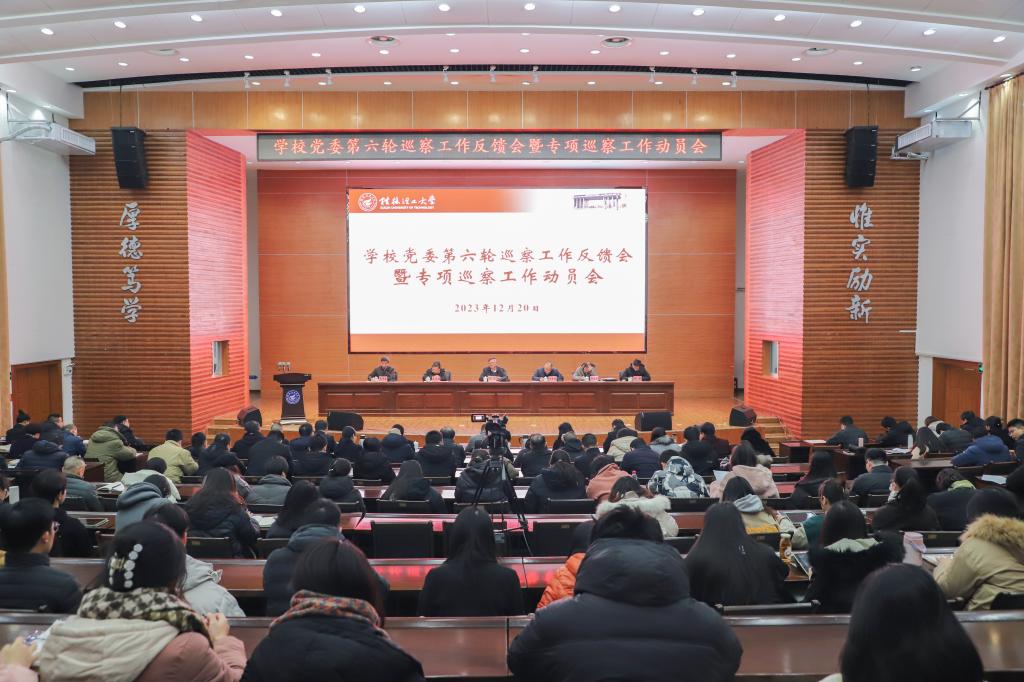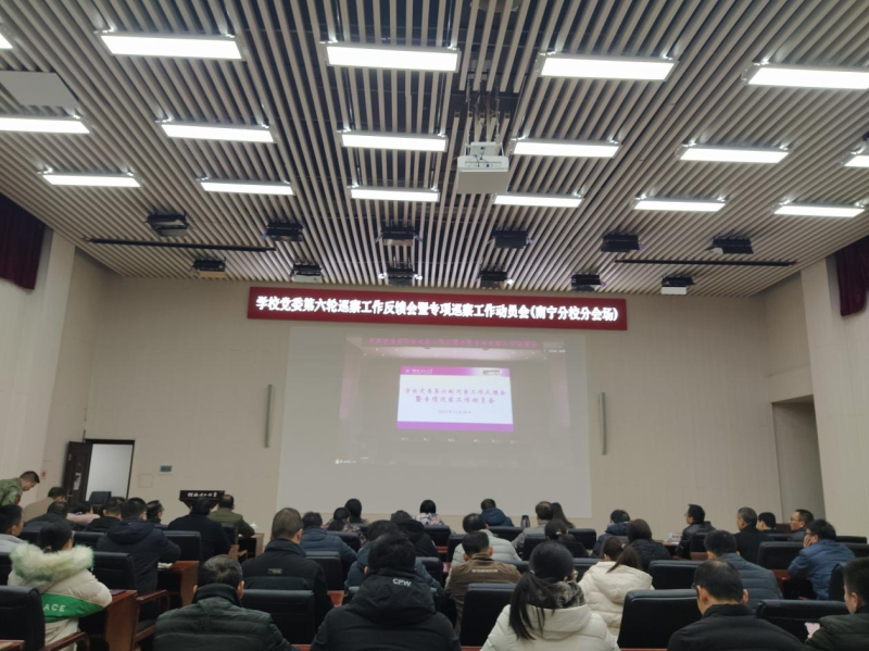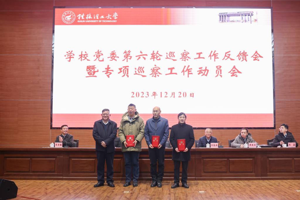 12月20日上午,学校党委第六轮巡察工作反馈会暨专项巡察工作动员会在屏风校区图书馆报告厅召开。学校党委书记、巡察工作领导小组组长邓军出席会议并讲话,学校党委副书记、校长、巡察工作领导小组副组长王敦球出席会议并宣布专项巡察组人员名单,自治区纪委监委驻桂林理工大学纪检监察组组长、学校党委常委、纪委书记、巡察工作领导小组副组长韦学敏主持会议。在家校领导吴志强、周国清、王磊,学校党委巡察工作领导小组成员,各二级党委书记、纪委书记、组织员,专项巡察组、第六轮巡察组成员以及被巡察单位领导班子、教职工代表参加会议。