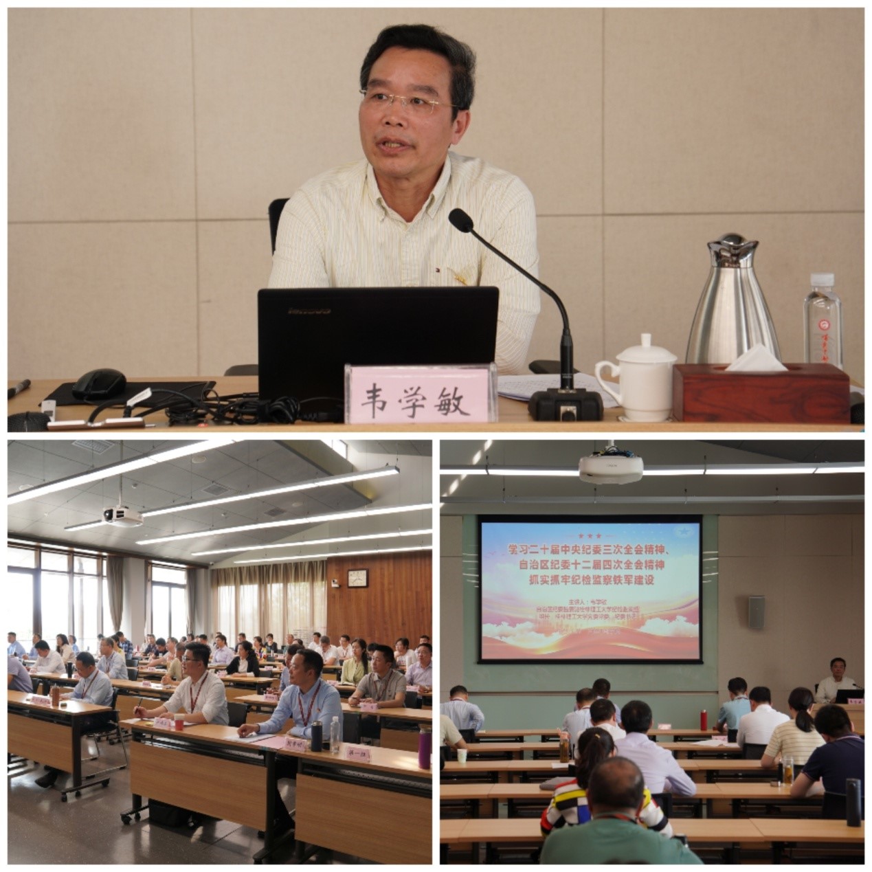 自治区纪委监委驻桂林理工大学纪检监察组组长,学校党委常委、纪委书记韦学敏作题为《学习二十届中央纪委三次全会精神、自治区纪委十二届四次全会精神,抓实抓牢纪检监察铁军建设》的专题授课