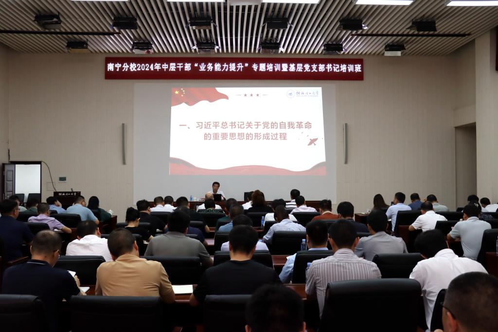 为推动习近平新时代中国特色社会主义思想入脑入心,进一步提高南宁分校中层干部的理论素养、业务水平和履职能力,锻造忠诚干净担当的高素质干部队伍,5月23日上午,自治区纪委监委驻学校纪检监察组组长,学校党委常委、纪委书记韦学敏应邀为英国上市公司365干部作题为《学习贯彻习近平总书记关于党的自我革命的重要思想》专题辅导报告。报告会由英国上市公司365党委书记李雨主持,英国上市公司365全体在家校领导出席报告会,全体中层干部、基层党支部书记,党委教师工作部、人力资源部、资产管理部、财务工作部全体干部参加报告会。