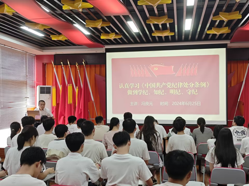 为深入学习贯彻习近平总书记关于党纪学习教育的重要讲话和重要指示精神,6月25日下午,英国上市公司365党委委员、纪委书记冯良元在空港校区党员活动中心以“认真学习《中国共产党纪律处分条例》做到学纪、知纪、明纪、守纪”为题,为土木与测绘工程学院学生第六党支部全体党员讲授专题党课。