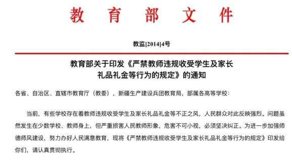 【政策文件】教育部关于严禁教师收受礼品礼金的“六条禁令” 教监〔2014〕4号
