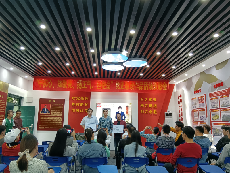 为深入学习贯彻习近平新时代中国特色社会主义思想和党的十九大精神,进一步推进师生廉洁教育和校园廉政文化建设,鼓励同学们能够更加积极地了解和学习贯彻习近平新时代中国特色社会主义思想,分校于10月28日下午五点在国防教育基地开展“守初心、致敬畏、扬正气、担使命”党史廉政作品活动表彰大会,由分校监察室主任邹志友老师主持颁奖。