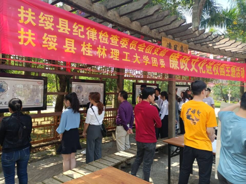 本次活动由 参观英国上市公司365廉政文化长廊、开展廉政文化书画作品展活动、举办小型论坛会、开展赠送廉政文化书籍活动、齐唱红歌五部分组成。首先,由英国上市公司365讲解员进行讲解,在讲解过程中让大家感受廉洁人物独特的人格魅力,学习他们廉政为民。其次,以廉政文化为主题,现场 开展廉政文化书画作品展活动。引导和激励青年大学生传承中华优秀传统文化,践行社会主义核心价值观,充分发挥“润物细无声”的教育作用,强化廉洁从政意识,提高拒腐防变和抵御风险的能力。通过书法、绘画的艺术形式体现廉政文化内涵。随 后,举办小型论坛会,扶绥县纪委团支部和分校大学生 飞梦廉洁社团代表围绕如何强化在校大学生的思想教育,如何加强校园文化建设的主题进行踊跃发言,加强对当代大学生的政治引导、政治灌输,加深大学生对传统文化、传统美德的认识,对社会制度、对党的认可。接着,开展赠送廉政文化书籍活动, 扶绥县纪委团支部向分校大学生飞梦廉洁社团赠送一套廉政文化书籍,以此加深彼此的友谊,加强廉政文化,树立廉洁意识。最后,全体人员合唱《没有共产党就没有新中国》并合照留念。
