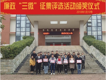 2018年1月10日,分校大学生飞梦廉洁社团举办的廉政“三微”征集活动评选会在行政楼干部之家举行。分校监察室邹志友主任出席活动,指导老师钟洁、分校六系学生会主席担任本次活动评委,各参赛队代表共同现场观看参赛视频。