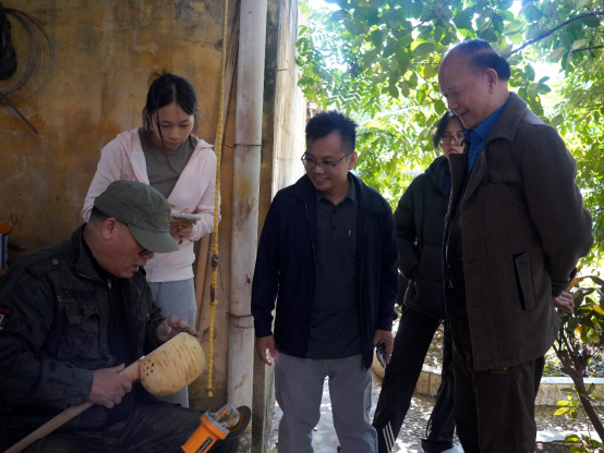 在广西非物质文化遗产名录《左江壮族民歌》代表性传承人农瑞群的带领下,调研团队走访了金龙镇、响水镇等壮族村落。农瑞群不仅是资深教育工作者,更是多所高校的硕博研究生指导专家,长期致力于壮族天琴文化研究。他主编的《古壮天琴文化考》、编著的《天琴:神秘的天籁》等著作,为天琴文化的学术研究奠定了重要基础。