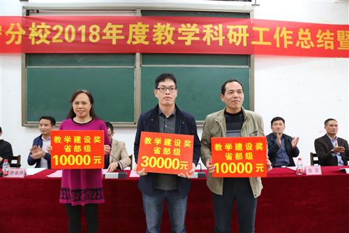 分校唐承泽副书记宣读了分校表彰文件。文件共表彰了分校2018年度“十佳授课教师”专项奖10项,教学科研专项奖240项,优质示范课及优秀课程教学团队专项奖10项。