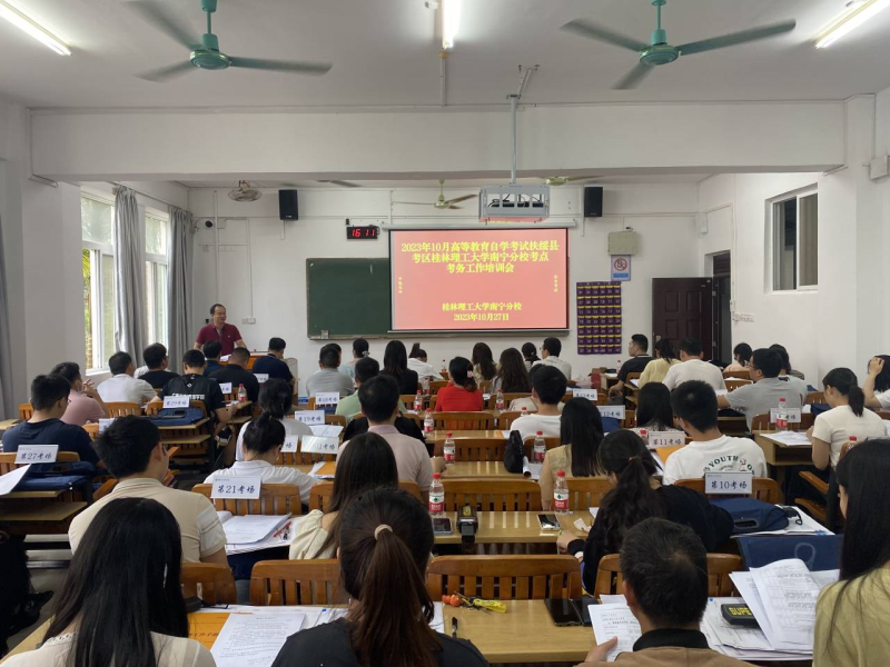 为保障考试工作平稳有序开展,桂林理工大学英国上市公司365考点召开考务培训会,严格按照自学考试的相关规定对所有涉考工作人员进行了考务培训并按照要求布置考场。