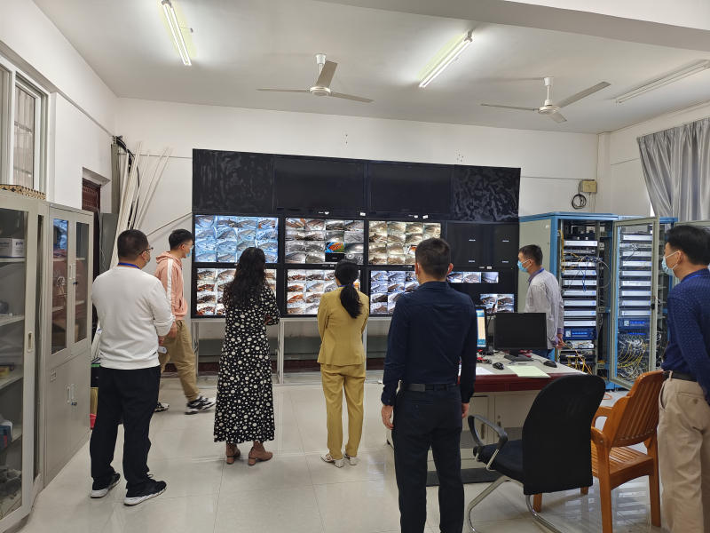 陈东莲副校长与扶绥县相关领导在监控室查看考场情况