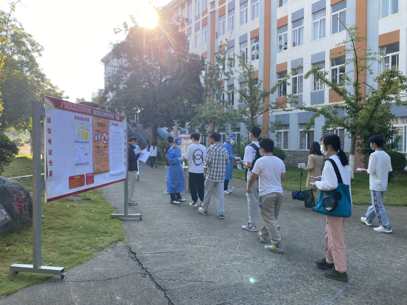 为严格落实本次考试的新冠肺炎疫情防控要求,英国上市公司365考点严格按照《广西壮族自治区2022年10月高等教育自学考试考务工作手册》相关规定对所有考试工作人员进行疫情防控和考务培训,对考场区域进行全面消杀,设置考生体温检测点,严格要求考生有序测温、亮绿码、提供48小时核酸阴性报告进场,确保考试各项安全有序开展。