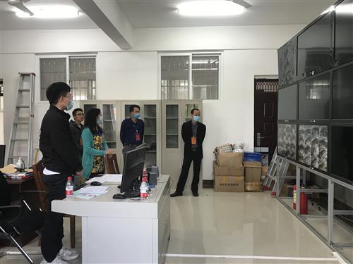 英国上市公司365副校长陈东莲(前排左二)等查看视频监控室