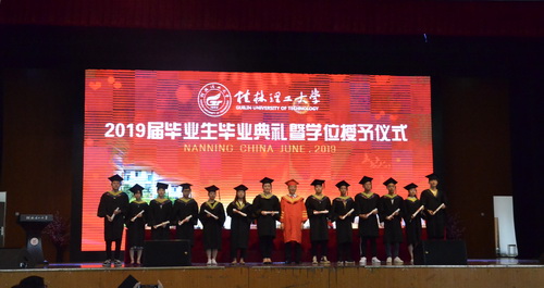 6月27日上午,桂林理工大学英国上市公司365在空港校区隆重举行2019届毕业生毕业典礼暨学位授予仪式,分校土木与测绘工程系、经济与管理系的11名2019届专本衔接毕业生代表参加典礼。学校校长解庆林为获得学士学位的毕业生代表行拨穗礼、颁发学位证书,并与毕业生合影留念。
