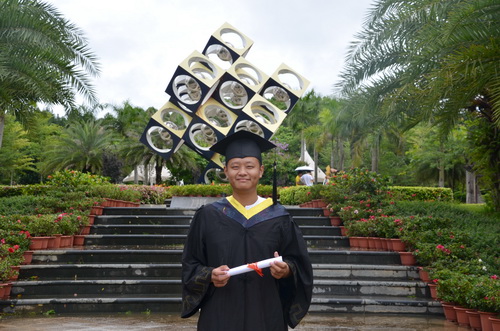 对学弟(妹)的寄语:自考如同独自穿越人生的一段隧道,选择后就心无旁骛,一路向前,相信“青春没有失败,奋斗创造未来。”