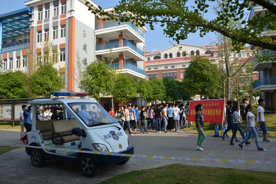 在考试期间,自治区招生考试院副院长叶仕业同志在崇左市教育局、扶绥县教育局相关领导的陪同下对分校空港校区考点的考场纪律及考场秩序等情况进行了巡视。