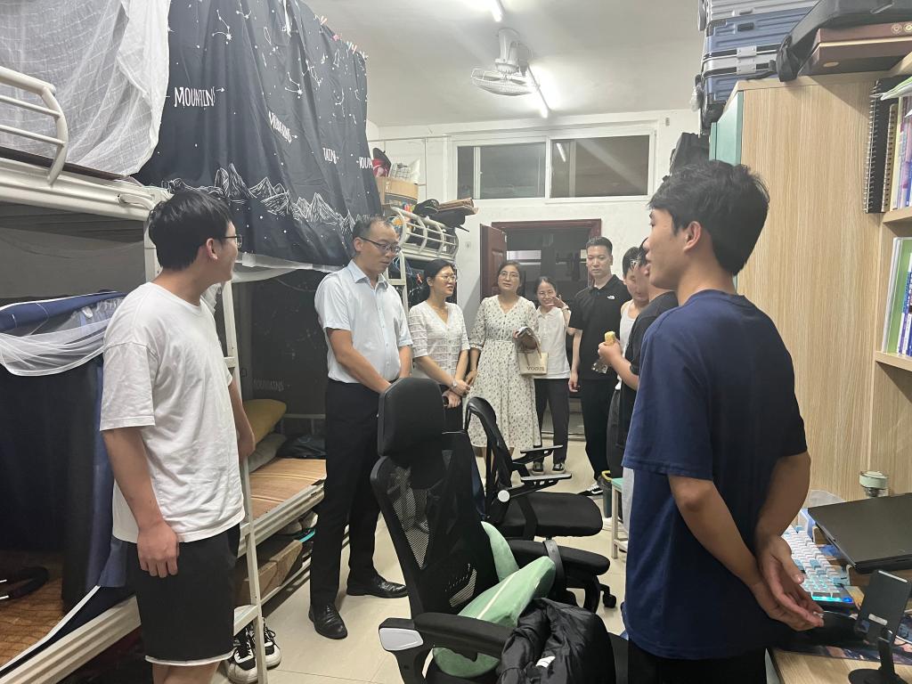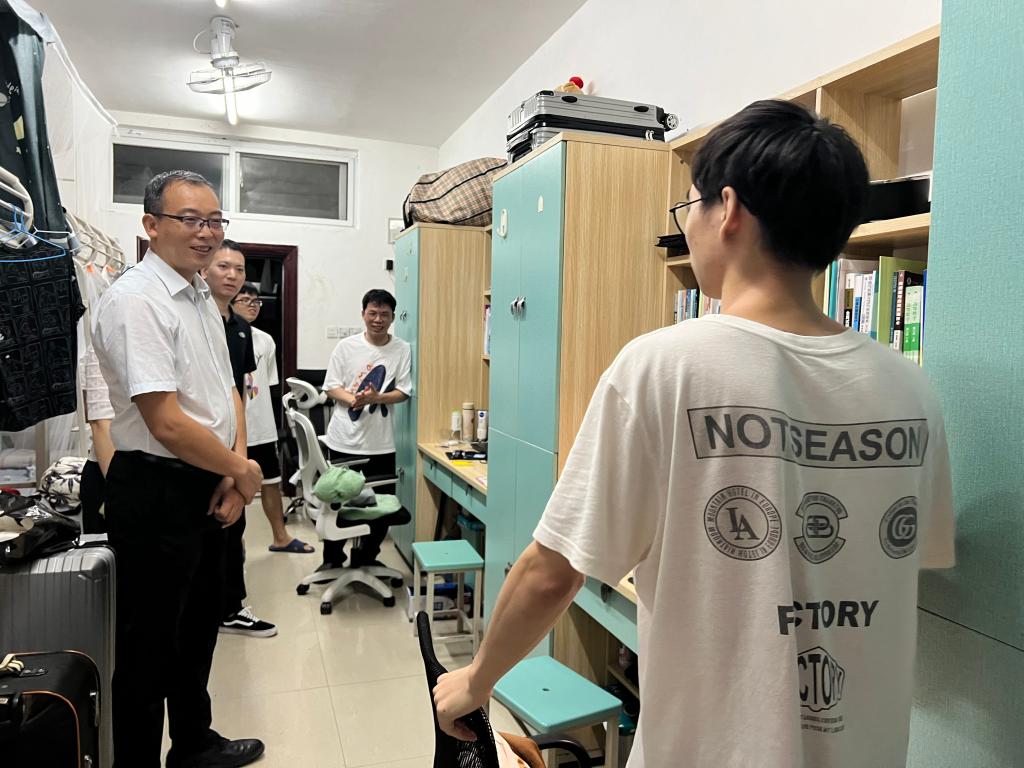 走访过程中,刘高鹏副校长亲切地询问同学们“生活是否习惯”“学习怎样规划”“就业有何考虑”等问题,细心了解了同学们在校园生活中的需求、疑惑后一一答复。针对部分宿舍存在充电器长期插在插线板上、物品摆放不规整等问题,他提醒大家要注意宿舍用电安全、保持环境整洁,共同营造良好的学习和生活环境。此外,他还勉励大家要立大志、明大德、成大才、担大任,志存高远、脚踏实地,希望大家在学习生活中保持昂扬的精神状态,在青春的赛道上跑出当代青年的最好成绩。