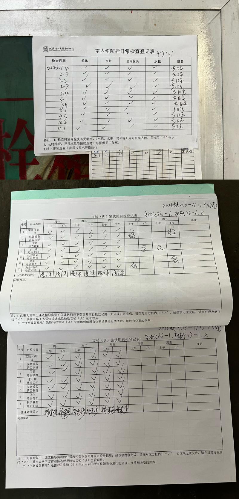 此次专项检查,系部领导班子成员对我系多媒体教室、实训车间、自习室、办公室等区域进行了全面检查,检查内容包括:消防设施是否完好有效、消防通道及安全出口是否存在堵塞堆物现象、是否有安全检查台账、工作人员能否正确使用消防器材等。