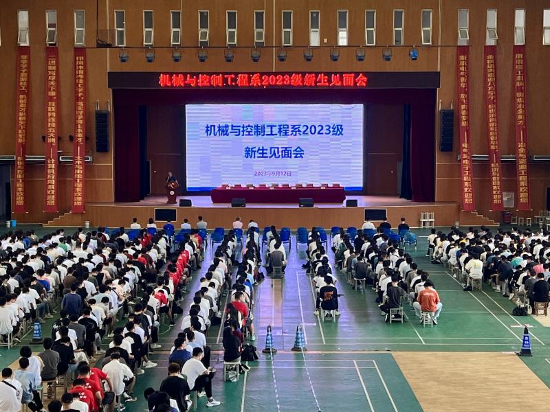 为做好2023级新生入学教育,9月12日下午,我系在体育馆召开2023级新生见面会。系党总支书记谢晓明,系主任黄荣学,系党总支副书记兼学工组长李杰,系副主任甘卓权等系部领导班子成员,新生班主任代表以及2023级新生参加会议。会议由系团总支书记吕顺岷主持。