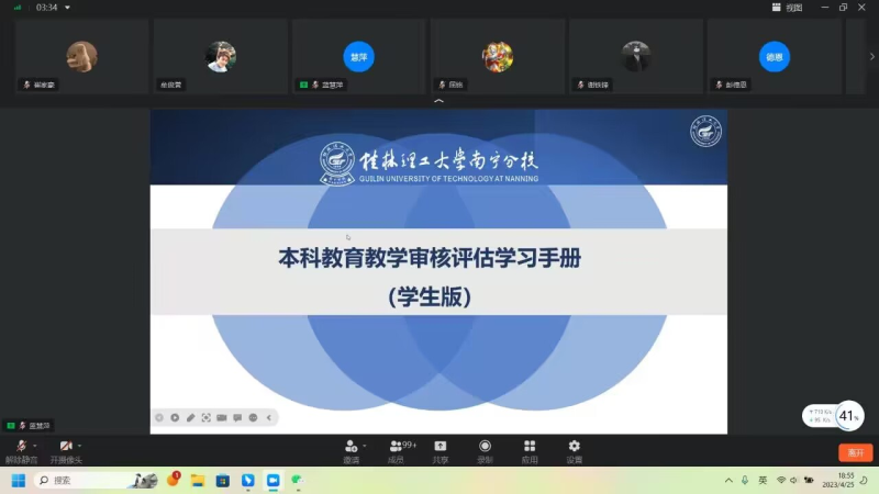 班会上,首先,强调了此次本科教育教学评估工作的重要性,带领学生重温桂工发展的历史、校训精神、育人体系、专业基础、招生就业等内容。其次,还采用模拟问答的方式进行线上与线下交流沟通,并对学生在本科教育教学评估学习中存在的问题进行逐一解答。