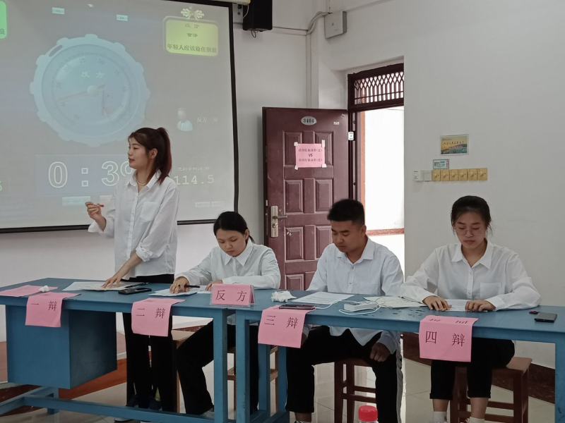 本次比赛围绕“年轻人应该乘风破浪还是稳住别浪”、“在人生道路上,机遇还是奋斗更重要”、“传承红色精神,志存高远还是脚踏实地更重要”、“内卷有没有利于大学生成才”四个辩题展开。赛事分为四个环节:开篇立论、攻辩、自由辩论、总结陈词。各组选手,及时抓住对方漏洞,引经据典。整场比赛,各组辩手思维敏捷,饱满热情,发光发热。为在场的观众带来了一场精彩的视觉盛宴,把辩论赛推向高潮。最后,评委针对各组辩手现场表现进行点评,指出辩手论辩时的优缺点,传授答辩技巧。