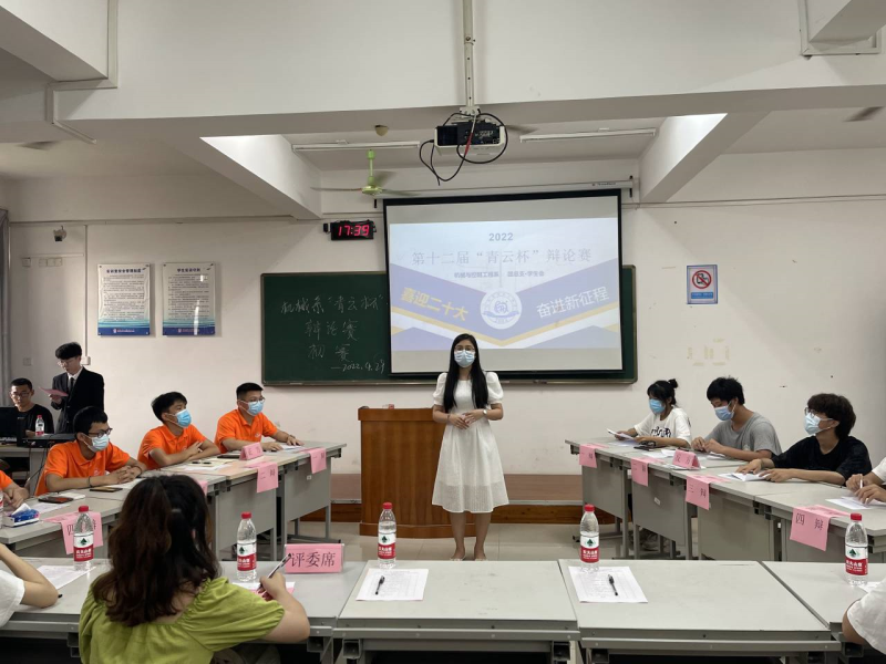我系于2022年4月29日下午6点30分在藏修楼3502教室举办辩论赛初赛。比赛班级为我系机械21-1班与机器人21-1班,比赛到场嘉宾有我系辅导员丘东林老师,比赛评委有侯瑞敏、黄漉单、周泽林、林家胜、杜琳琳,裁判为黄秋林,我系参赛班级同学如期到场,比赛顺利举行。