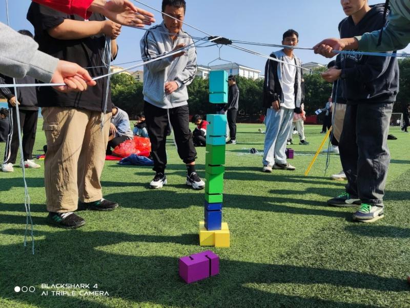 此次活动的项目有:珠行万里、合力建塔、团队构建、“风火轮”、神笔马良以及击鼓颠球等。在团体活动的过程中,同学们积极参与,热情高涨。