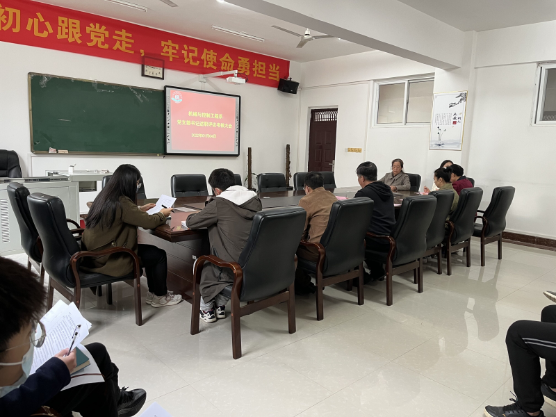 2022年 1月4日下午,机械与控制工程系在3205会议室召开党支部书记抓基层党建工作述职评议会议。系部党总支委员、各支部书记、党员代表参加会议。会议由党总支书记袁斌主持。