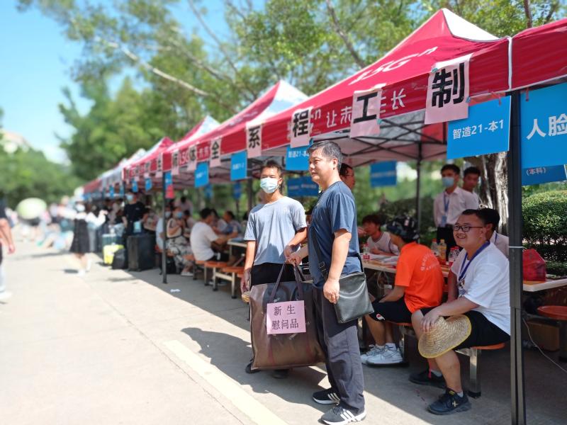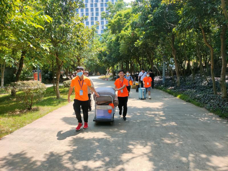 “接过你的行囊,我们就是一家人。校园里,志愿者们开始了一天的工作,他们主动帮新生帮忙提行李,一路交谈并介绍学校,就有志愿者接过行李,一直送到宿舍,真是‘一条龙服务’。”2019级智能制造工程专业的岳琦雯同学是这些志愿者中的一员,他说:“从新生身上,我仿佛看到了去年的自己。而且还是在疫情防控的特殊时期,我更想尽自己的一份力去帮助他们。"