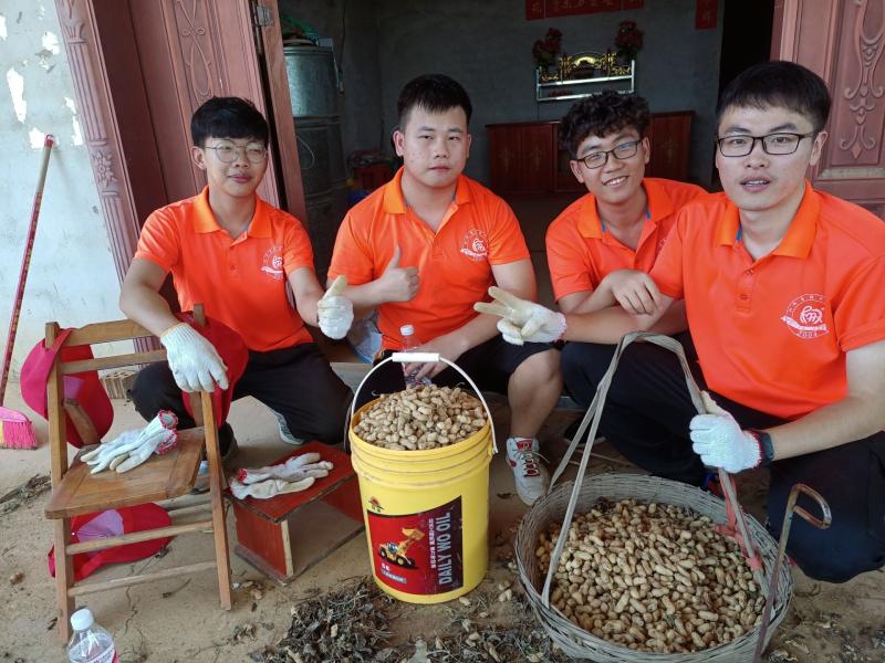 图为实践团成员帮助当地农民摘花生 李莹摄