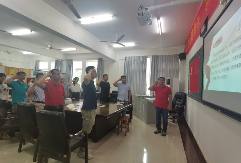 为庆祝中国共产党百年华诞,深化党史学习教育,7月1日,机械与控制工程系党总支开展“传承红色基因 重温入党誓词 ”的主题党日活动,为总支在1月-7月份入党的党员唐淑珍、何建金、李肖然、奚富由、王文兵等5名同志过“政治生日”,共忆誓言初心,接受政治洗礼,激励党员干警发挥先锋模范作用,强化党员身份认同感,树牢为民服务意识。