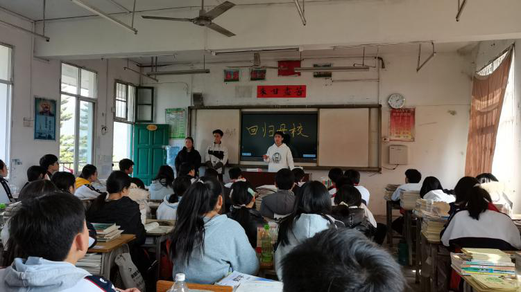 数控20-2班董雨南:他利用假期空闲时间回访临桂茶洞初中母校,一方面想去看看他曾经的老师及学校的一切,一日为师,终身为父,老师们曾经用半身的知识浇灌,如今,他已经成长即将步入社会,最应该感谢的是一直教导的老师。然后他向恩师带去祝福,汇报自己在大学期间所获得的成绩。另一方面他向学弟学妹们分享自己之前的学习方法,以及中考备考经验和备考注意事项,介绍分校的办学历史,专业设置,校园环境,招生政策,科学研究,国际交流和奖助学金体系等方面的优势和特色,讲述自己对大学生活的切身体验,对学习方法态度的体会和对个人成长成才方向的感悟,激发学弟学妹们对大学生活的向往。