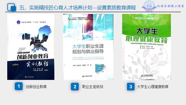 1. 搭建了全体学生的创新创业课程、大创比赛与项目教学一体化系,形成精技匠心育人才培养方案的保障机制。