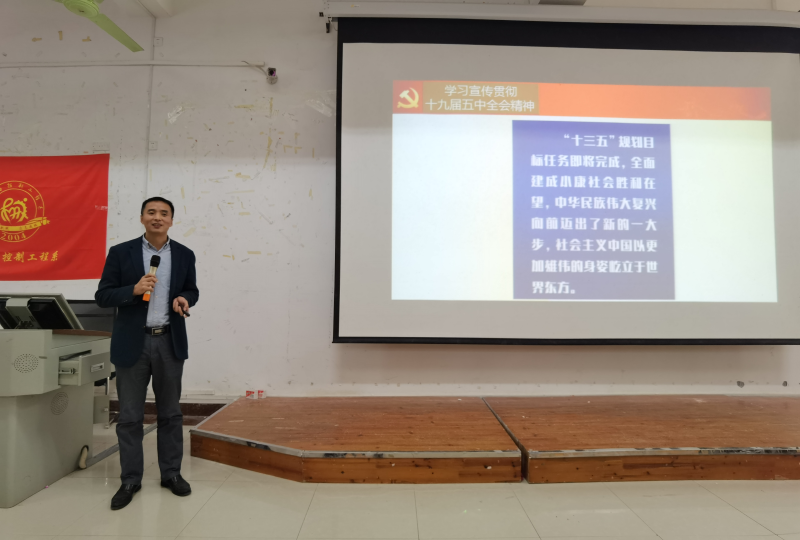 12月10日,分校党委副书记唐承泽在8108教室为机械系党总支全体党员和学生骨干讲授“学习贯彻党的十九届五中全会精神——做英国上市公司365高质量发展的积极实践”专题教育党课。