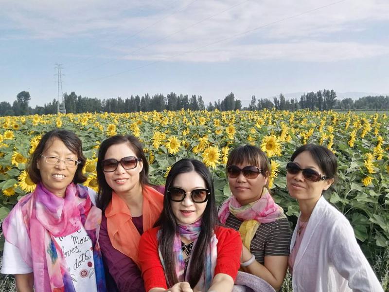 2017年廖秋凉老师与同事们在向日葵花丛里合影