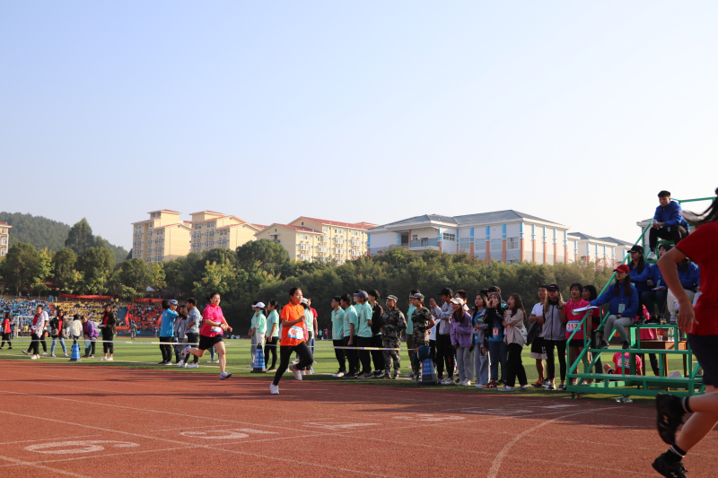 11月8日8:30,天朗气清,跟着一声哨响,女子200米预赛开始,这是当日首场比赛,女子短跑开锣,田径运动会进入高潮。梁佩婷、潘芳玉、隆艳萍、郑丽萍、孙雨、黄日红这六名运动员代表我系参加比赛。她们在赛场上巾帼不让须眉,跑出飞人般的水平,跑出了机械系的钢铁般的斗志。