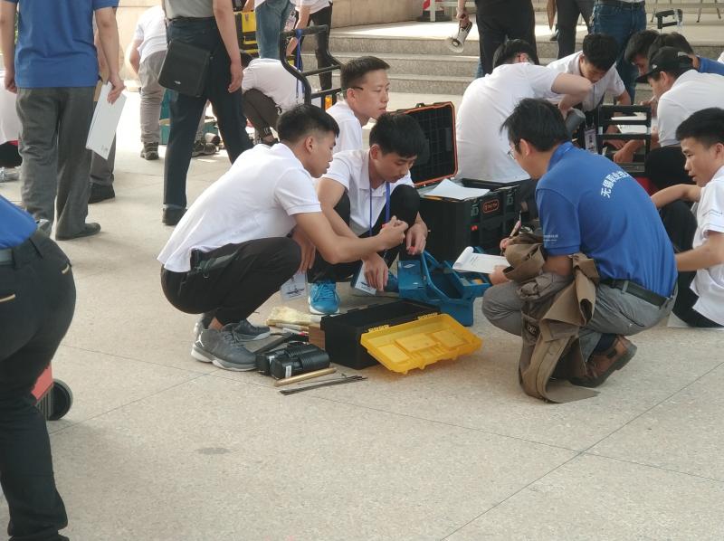除程序的修改外,机械硬件的消耗与训练耗材的缺乏是参赛选手最大的困难。长时间高强度的训练,不仅考验着参赛选手的生理与心理,也考验着机械设备的耐用性。为解决机械设备损坏的难题,参赛选手们到图书馆及网上查阅大量维修设备的相关知识,指导老师也会与厂家进行联系。每当厂家技术人员到校运送配件时,参赛选手就会缠着技术人员,大到整体拆装小到零件精度都刨根问底。