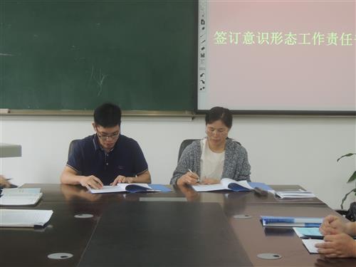 我系党政负责人与教研室主任、党支部书记代表在会上签订了《意识形态工作责任书》。