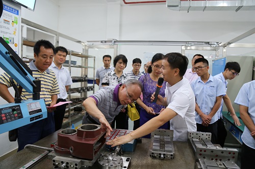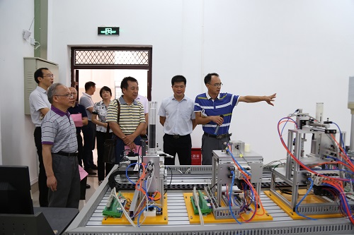 首先,验收专家组在分校领导的带领下,先后到智能制造工厂,电工技能实训室,自动化生产实训室,工业机器人实训室,五轴加工中心,快速成型实训室,精密测量实训室等实训基地,现场检查实训基地建设和运行情况。
