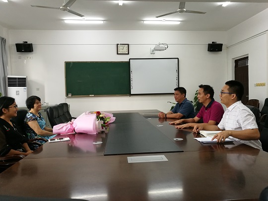 我系教师韦余苹、王丽萍作为代表在党总支书记袁斌陪同下接受分校领导的慰问,并与分校领导进行工作、生活等各方面的交流,同时对分校领导的问候与祝福表示感谢,并表示将继续努力为推进分校“双高”建设贡献自己的力量。