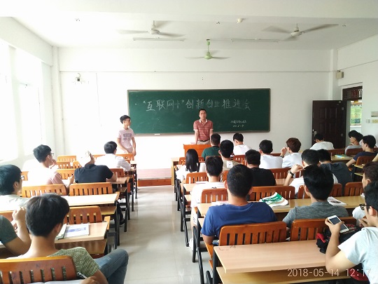 5月14日中午,我系在藏修楼203教室召开了“互联网+”创新创业推进会议。会议由我系党总支副书记甘锦琛老师主持,辅导员韦选建老师、学生会委员以及16、17级各班班长团支书参加会议。