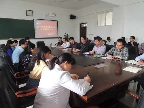 3月6日下午,机械与控制工程系在藏修楼205会议室召开了2018年春季学期全体教职工大会,分校副校长唐承泽、我系领导班子及全体教职工参加了会议,会议由我系党总支书记袁斌主持。