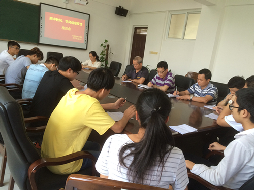 5月25日下午,我系在藏修楼205会议室召开了本学期教风和学风信息反馈座谈会。系主任黄荣学副教授、副主任甘卓权老师、各教研室主任、教学秘书及各班学习委员代表参加了座谈会。
